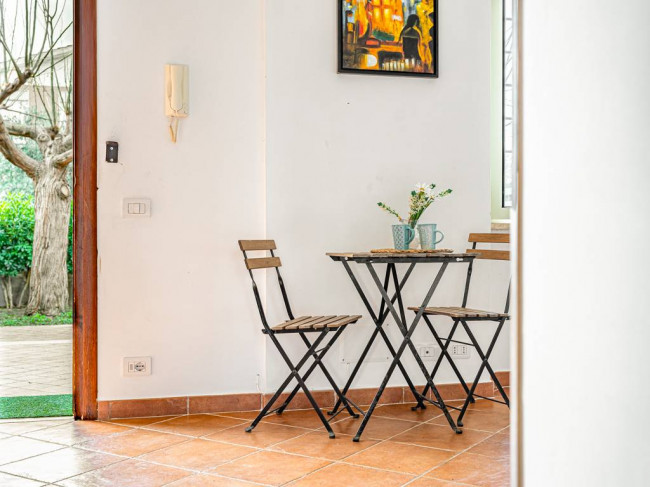 L'Appartamento si trova al piano terra di una piccola palazzina e gode di un accesso indipendente dal giardino privato, che si trova sia di fronte sia sul retro dell'abitazione, perfetto per trascorrere piacevoli momenti all'aria aperta in totale relax.
