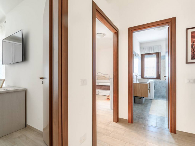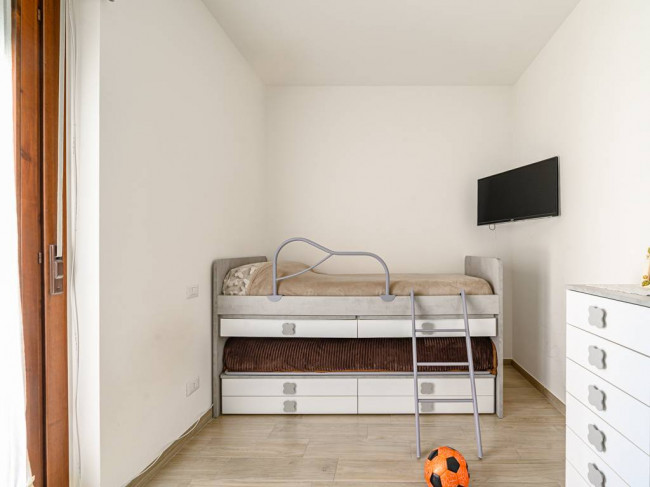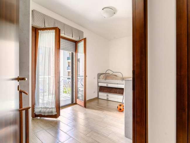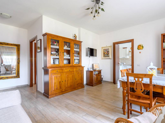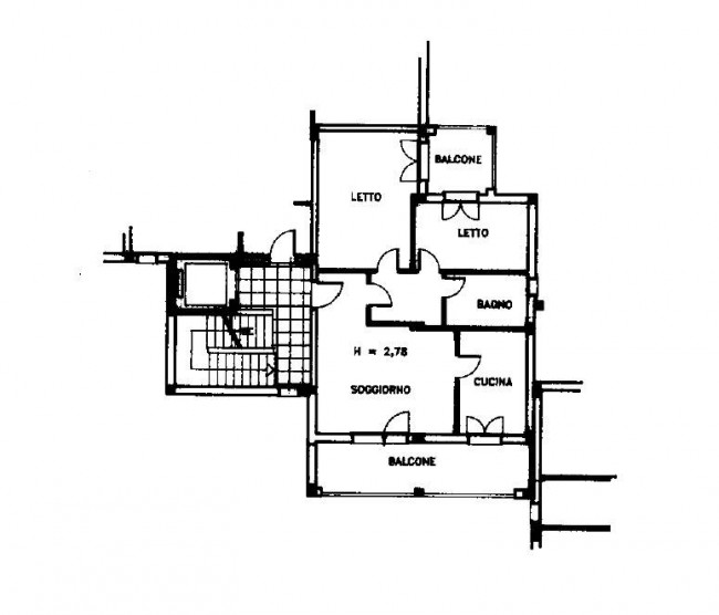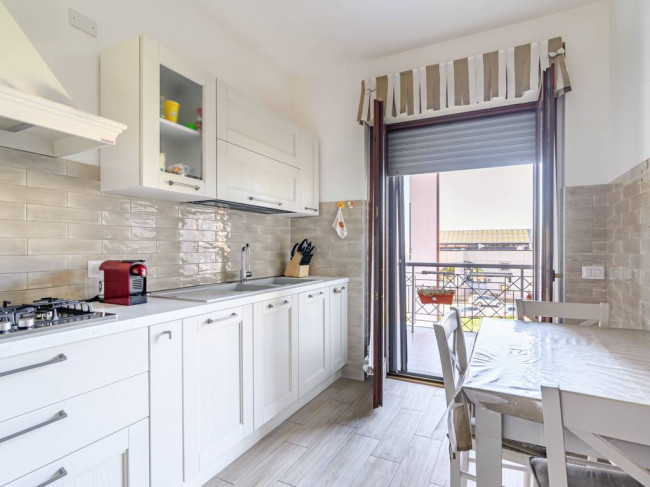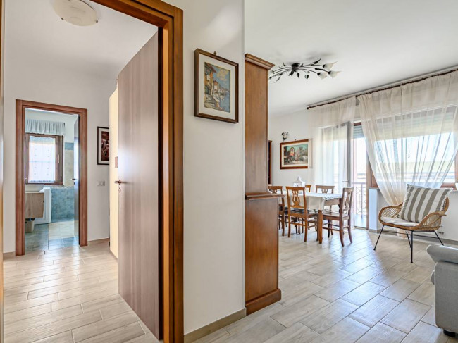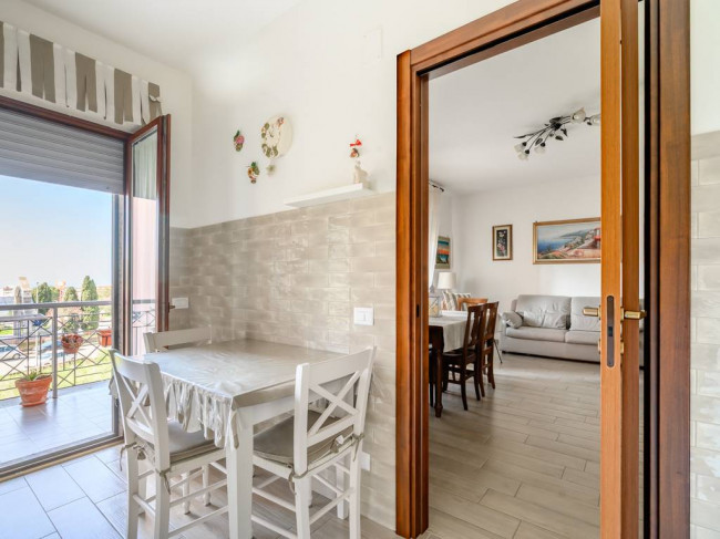 L'immobile di 83 mq catastali è composto da: soggiorno, cucina abitabile, ampio disimpegno, camera padronale, cameretta, bagno con doccia e due balconi dotati di tende da sole. Dal soggiorno e dalla cucina si ha l'accesso al balcone le cui dimensioni sono di circa 12 mq, mentre dalle due camere si accede all' altro spazio esterno di circa 4,30 mq.