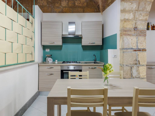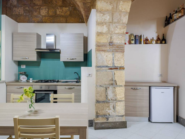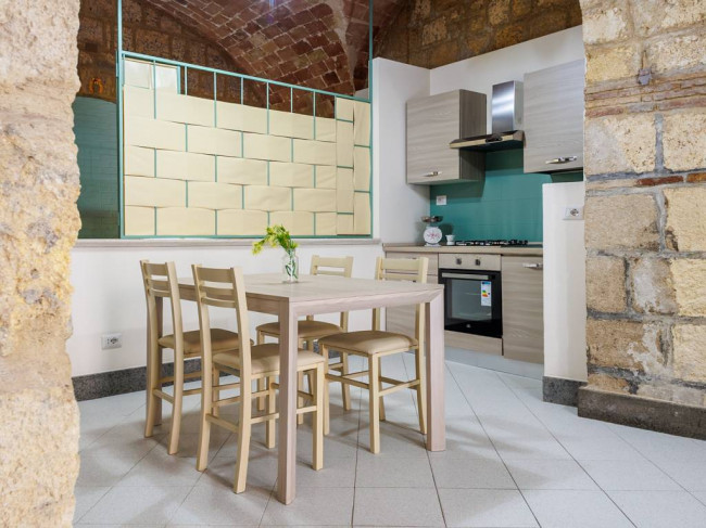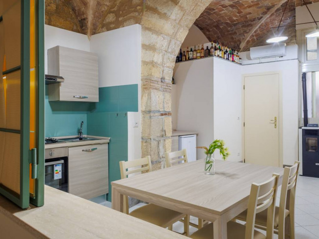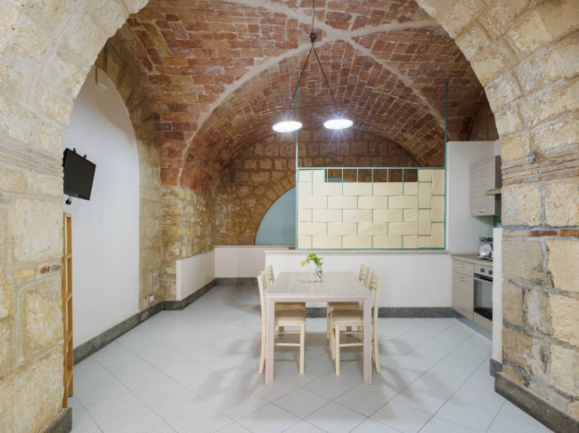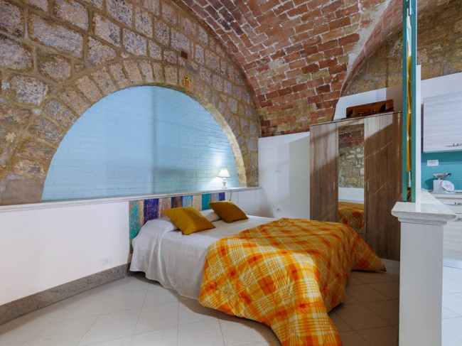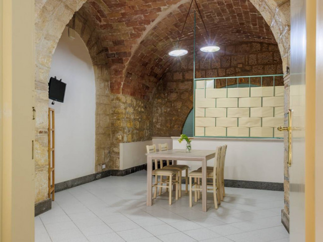 I soffitti a volta con i mattoncini a vista e le mura in macco gli conferiscono un'atmosfera autentica e unica. Con una superficie totale di 51 mq, l'Appartamento è ideale per una coppia o una persona singola che desideri vivere nel centro storico, immerso nella vita e nella cultura della città. L'immobile è composto da un unico locale spazioso, che può essere utilizzato come soggiorno e camera da letto. Un bagno moderno e funzionale completa la zona giorno.