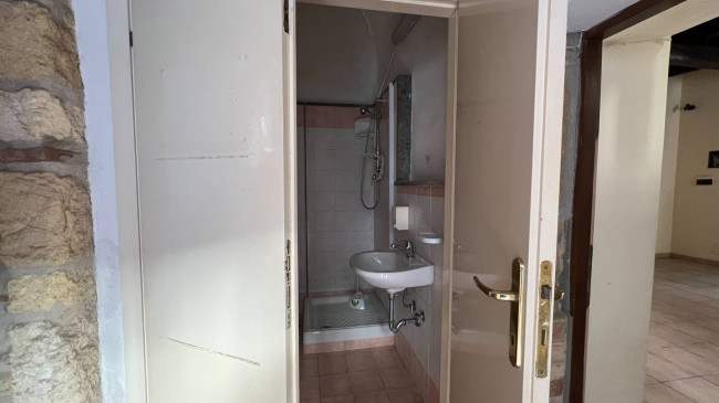 Attualmente l'immobile risulta separato in due ambienti, entrambi composti da ingresso, ambiente unico e bagno; uno è attualmente abitazione, l'altro è un locale commerciale.