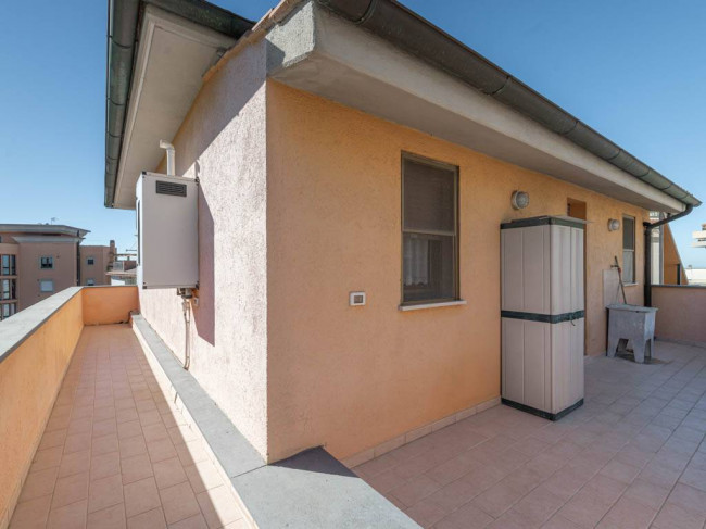 L'immobile è composto da: ingresso, soggiorno, cucina abitabile, 2 camere matrimoniali, 1 studio, 2 bagni, disimpegno, ripostiglio, 2 balconi per un totale di 20 mq ca. (uno con accesso da cucina e soggiorno e l'altro dalle due camere matrimoniali), 1 terrazzo di 30 mq ca. e un giardino di 75 mq ca.