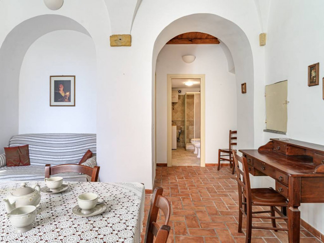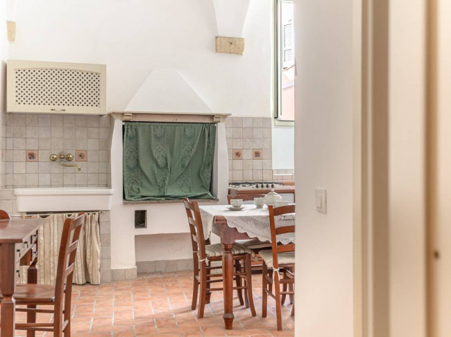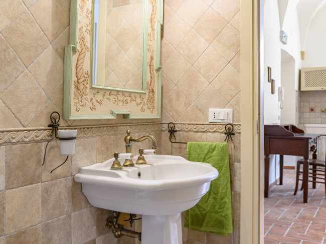 I pavimenti in cotto, i soffitti alti a volta conferiscono un tocco di rusticità e charme alla casa.