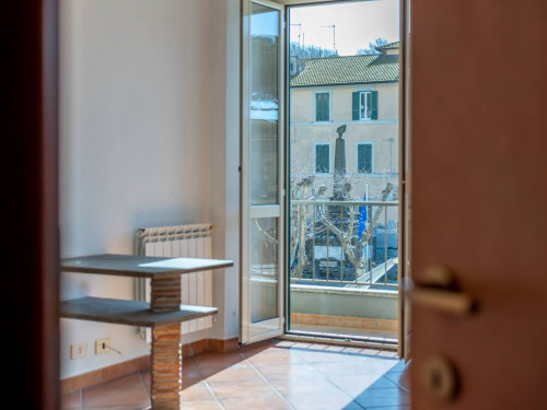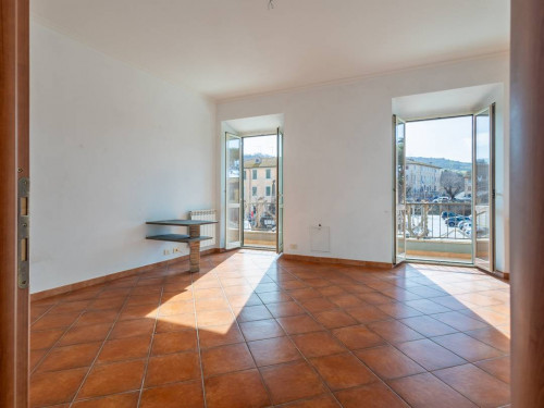 Le due porte finestre del soggiorno, consentono l'accesso al balcone che affaccia su Via Vittorio Emanuele e sulla piazza del Comune.