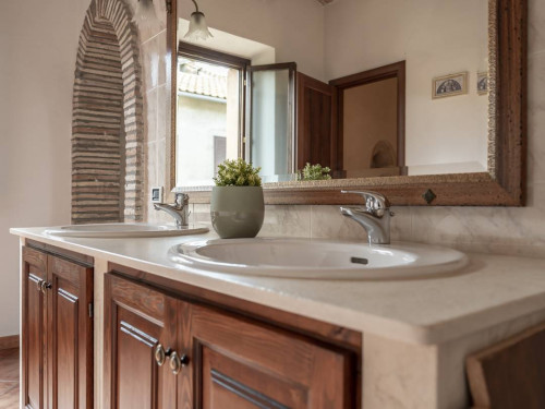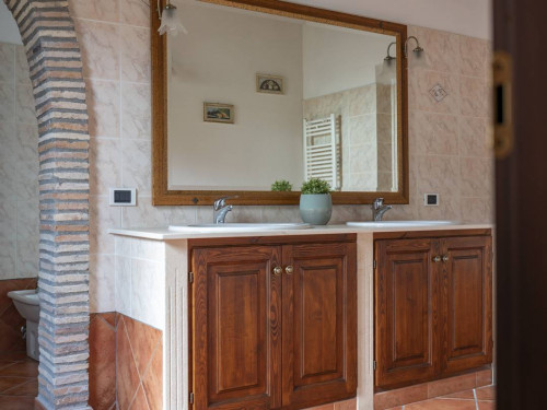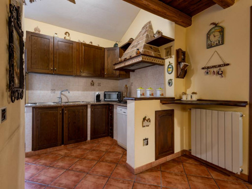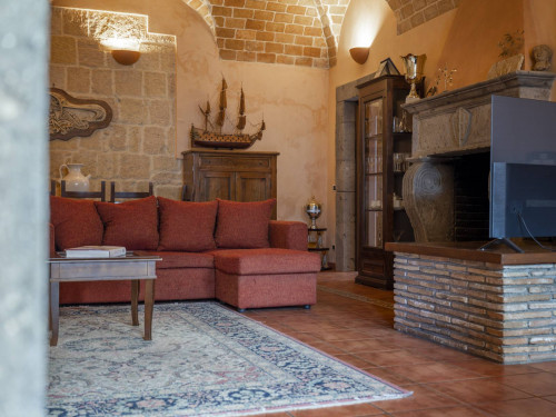Gli spazi, tutti molto ampi e ben arieggiati, sono suddivisi in soggiorno con camino in nenfro, cucina abitabile in muratura, cameretta con soppalco, bagno con doccia, camera matrimoniale con bagno padronale di grande metratura che permette il posizionamento, oltre che della doccia già presente, anche di una vasca idromassaggio, dove potersi godere momenti di vero relax a fine giornata.